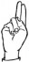 На ћирилици написано БУДИМИР КЛАРИЋ састоји се из 13 слова [?]. Исписано ћириличном једноручном азбуком за глувонеме: